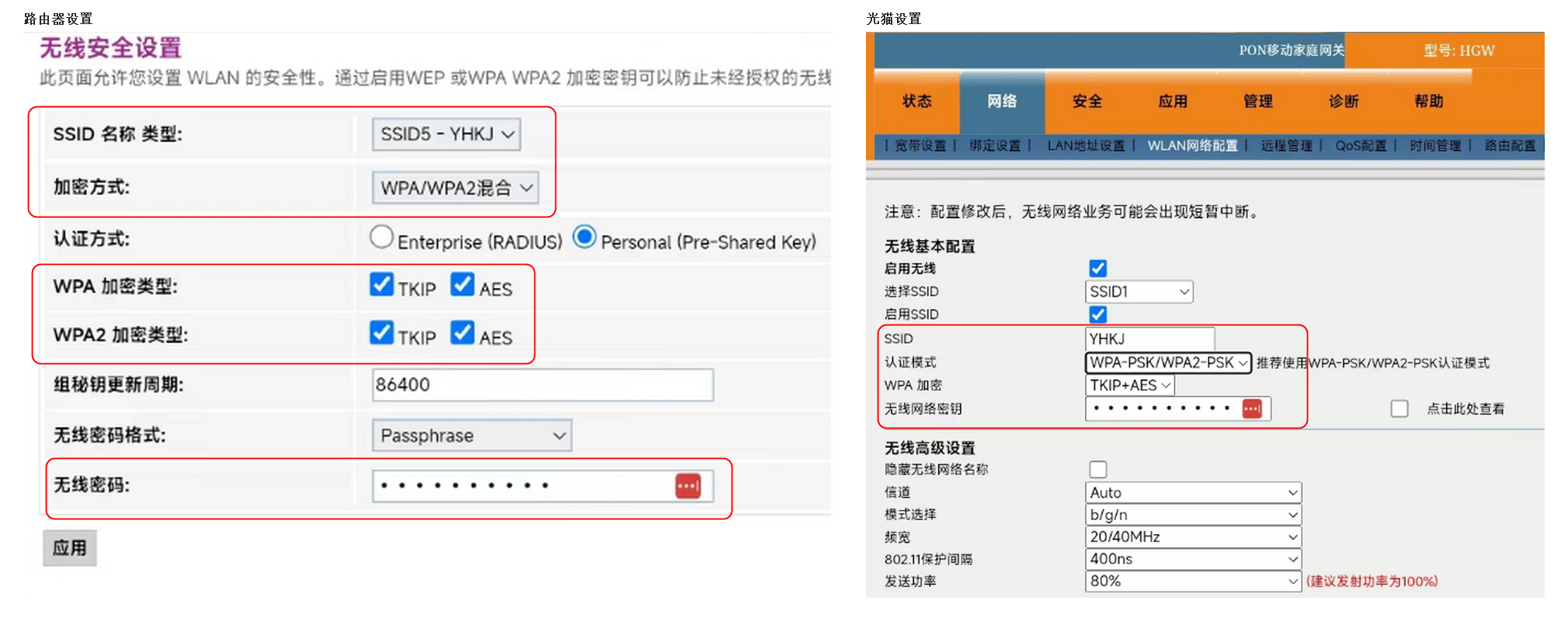 实例,在移动的光猫与赠送的路由器之间实现无缝漫游: