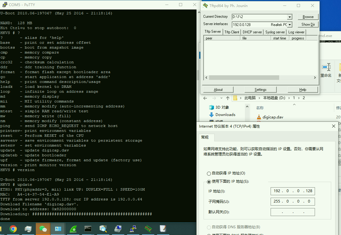 C:\Users\Maker Yang>tftp -i 192.0.0.128 get digicap.dav 传输成功: 2 秒 19350843 字节,9675421 字节/秒