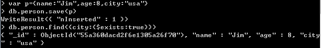 1、{city:{$exists:true}}: 集合中存在city这个字段的数据