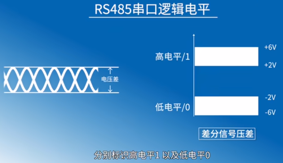 RS485:半双工模式(同一时间单方上传与下载),通过差分信号把RS232转RS485通信,最高可达1200米,通过一对差分双绞线传输(就是网线),使用双绞线电压差来传输,这样抗干扰能力更强