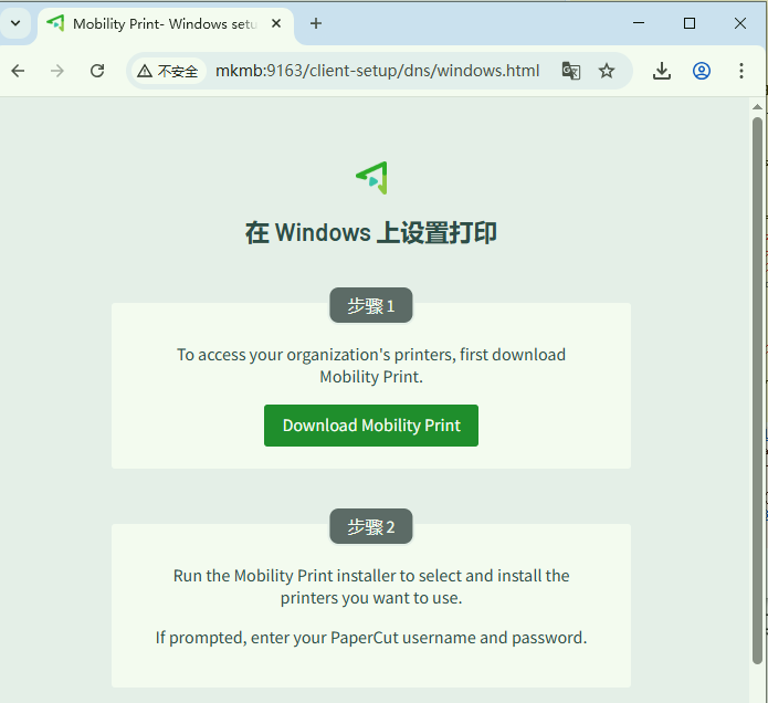 用Windows ipp方式连接打印机,只支持PCL驱动,不支持GDI驱动,必须使用PaperCut Mobility Print 提供的安装网址下载才能兼容所有驱动并正常打印:http://计算机名称:9163/setup 。